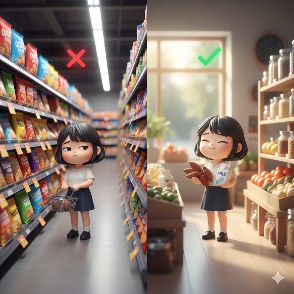 인플레로 식품 가격 상승(식품 지수 3.2%↑) 속, 우리 모두가 "진짜 건강"을 외치며 서구 국가 선반에서 이미 등장. 한국에서는 '저속노화'와 연계해 기본 재료를 선호하죠.